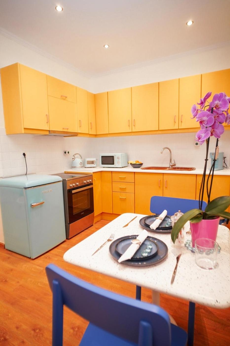 One-Bedroom Apartment. The air-conditioned apartment has 1 bedroom and 1 bathroom with a bath and a hairdryer. Guests can make meals in the kitchen that features a refrigerator, kitchenware, an oven and a microwave. The apartment features a washing machine, a coffee machine, a wardrobe, tumble dryer and a flat-screen TV. The unit has 1 bed.